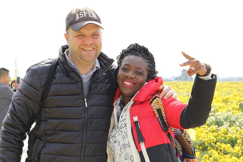 這也在拍,那也在拍,看來這些外國專家對咱們的云臺冰菊很有興趣么~各類膚色的人聚在一起共同賞菊品菊,場面和諧極了,看來不僅藝術(shù)能促進(jìn)各國間的文化交流,農(nóng)業(yè)照樣有聚集人心的魅力啊!
